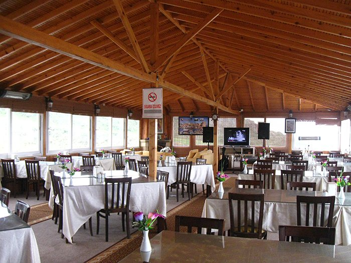 Kış aylarında ise 120 kişilik şömineli salonumuz, sıcak ve samimi ortamıyla misafirlerimizi karşılıyor. Çıtır çıtır yanan odun ateşi eşliğinde, sevdiklerinizle birlikte hem keyifli sohbetler edebilir hem de özenle hazırlanmış menümüzden seçkin tatları deneyebilirsiniz.